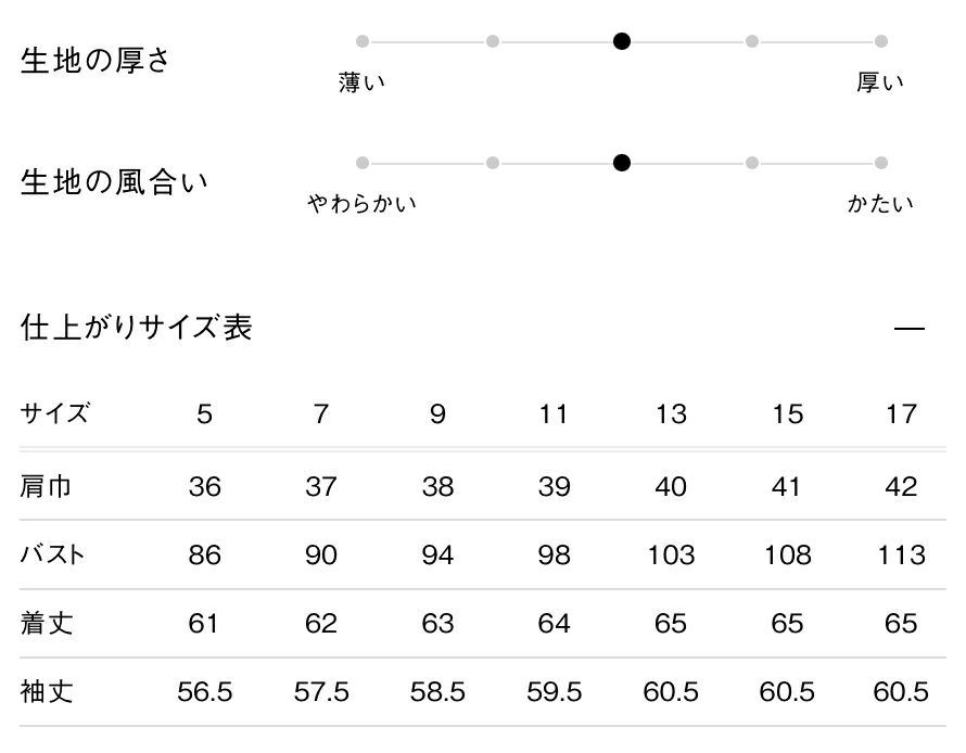 ※この商品はシルエットの美しさを活かすため、当社の他の製品に比べ細身の仕上がりになっています。