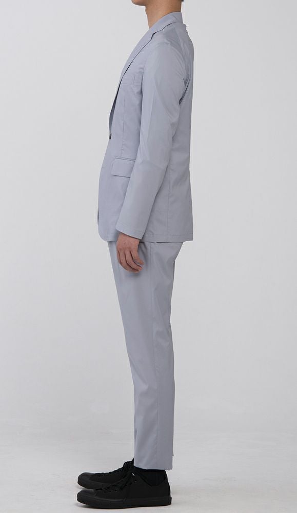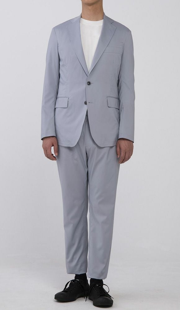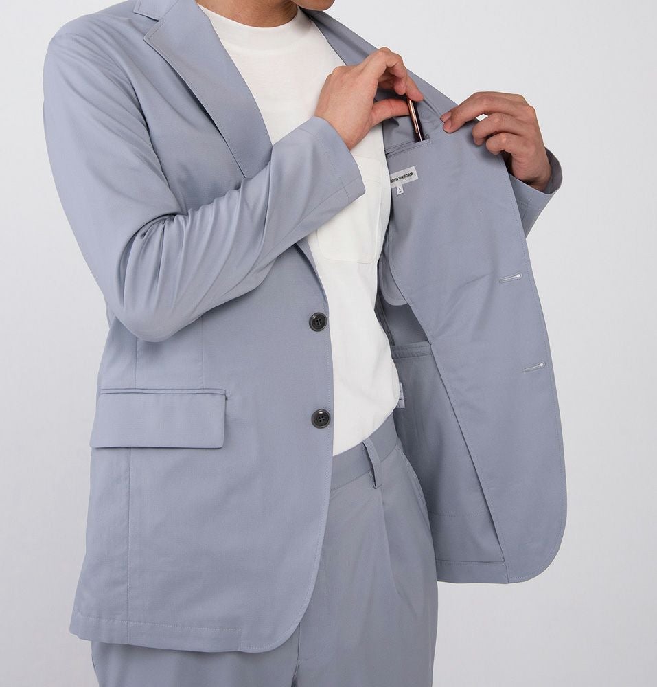 特徴 リップストップという生地が特徴。格子の織り柄がデザインにもなっていて、万が一裂けた際に止めるという効果があります。アウトドア製品でよく見る生地のユニフォーム版です。ストレッチ、撥水、軽量と多機能な生地です。ジャケットは肩パッドなどなく1枚で作成されているので着用してないような軽さ。畳んでもコンパクトになり鞄にも楽に入ります。着ている姿はウールスーツと同様のホスピタリティー、高いおもてなしの姿となります。内ポケットも左右1つずつあります。同素材のパンツも2種ありますので、スーツとしてのコーディネートも出来るものになっております。