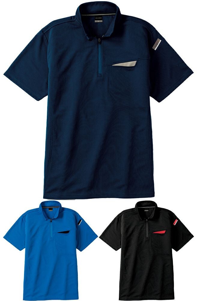 SS~6L 切りポケハーフジップ半袖ポロシャツ[4.4オンス] [KKRY-3686]