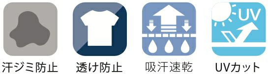 機能 汗ジミ防止、透け防止、吸汗速乾、UVカット