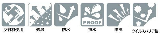 反射材使用・透湿・防水・撥水・防風・ウイルスバリア性