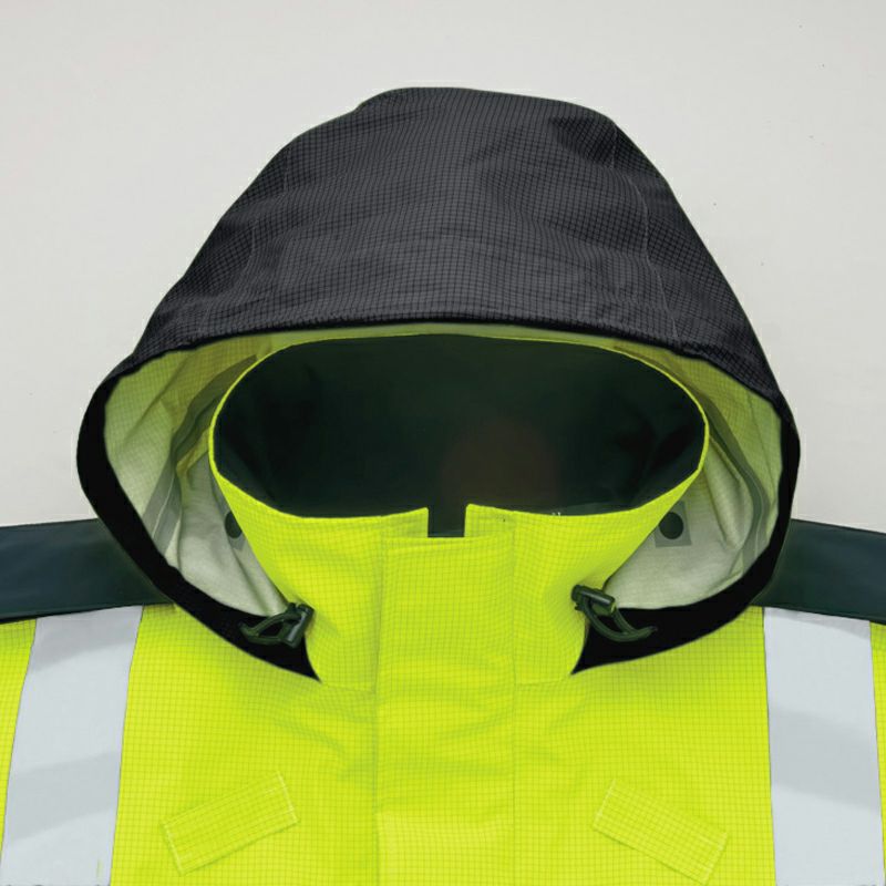 【ISO20471クラス3】:EN ISO20471(旧 EN471)は、危険回避の先進国ヨーロッパで定められた工業品規格の1つで、高視認性衣類に対する基準を設定したものです。この高視認性衣類の目的は、潜在的に危険な環境で働く人達の存在を目視で判断できるように、反射材や蛍光色などを使用して着用者の危険を回避させることです。そのため、厳しい天候下、薄暮れ時や暗闇などの諸条件における要件を規定。さらに生地の色や堅牢度、耐久性、デザインや反射材の幅、角度・生地の使用量まで厳しい設定をクリアする必要があります。 また、EN ISO20471(旧 EN471)の要件では、働く環境の危険度に応じて、低度、中度、高度の3クラスが定められています。