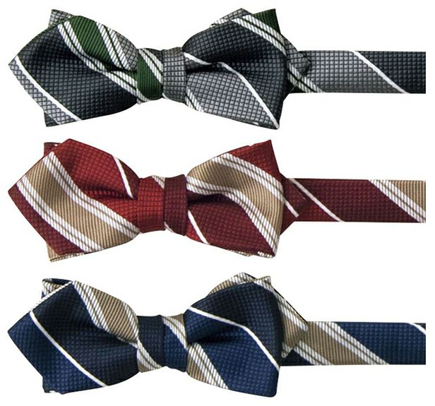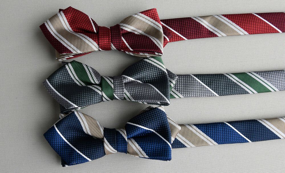 特徴 イギリスの伝統的な連隊旗縞から生まれたとされるレジメンタル・ストライプ。このストライプ柄はわかりやすく、ユニフォームらしい視認性と連帯感が得られる。蝶タイのかたちに出来ているレディタイで、首の長さ調節も金具で簡単に出来る。柄のある小さめのポインテッド型ですのでフォーマルシーンでは使用せず、遊び心あるシーンでのコーディネートをオススメします。ポリエステル100%、扱いが楽でシルクより耐久性は優れている。