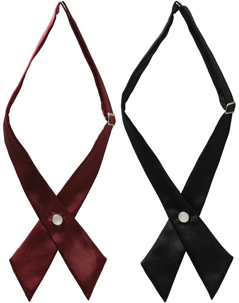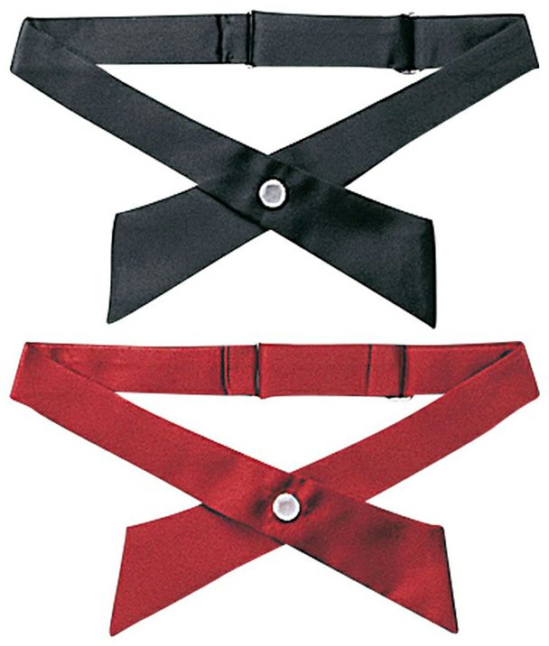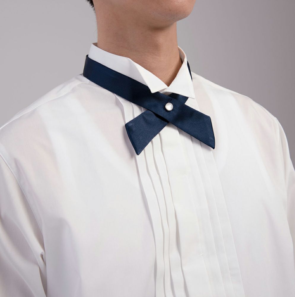 首元でクロスにとめるタイ。フォーマル向けのタイで、蝶ネクタイよりもスッキリした印象に。