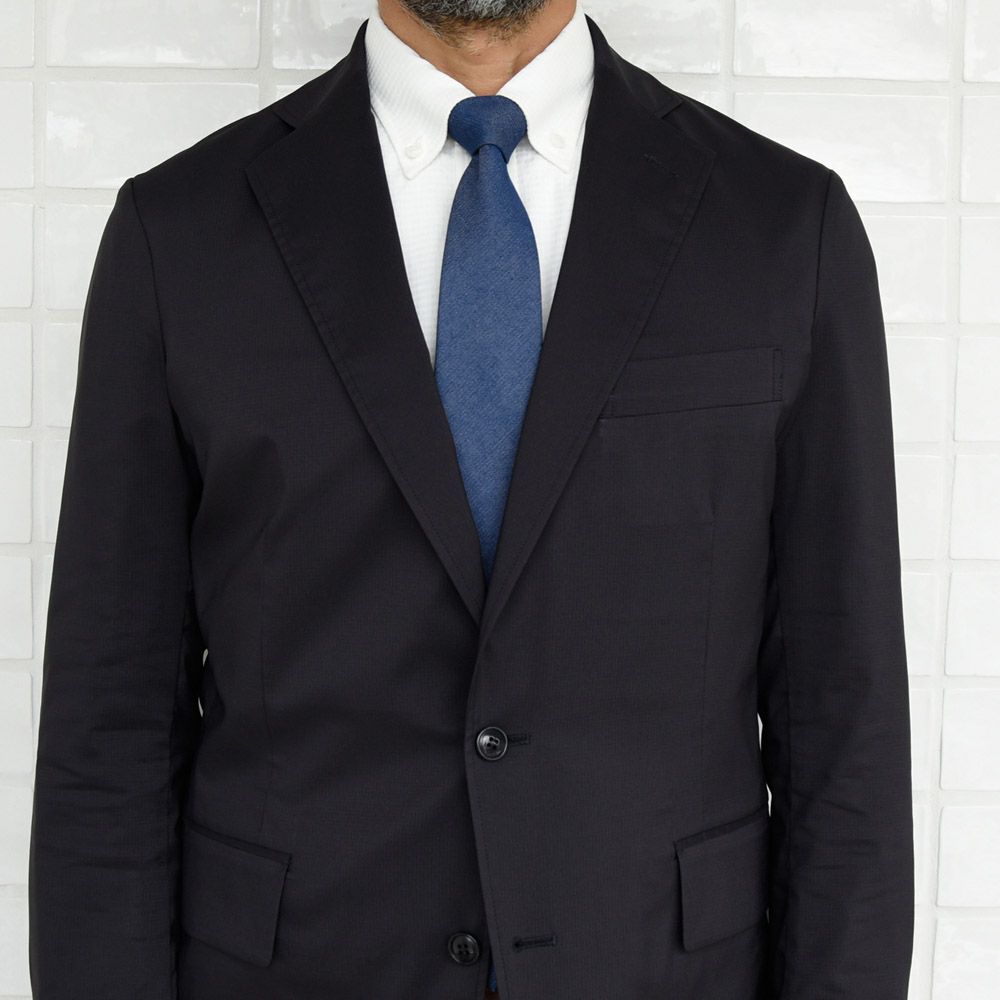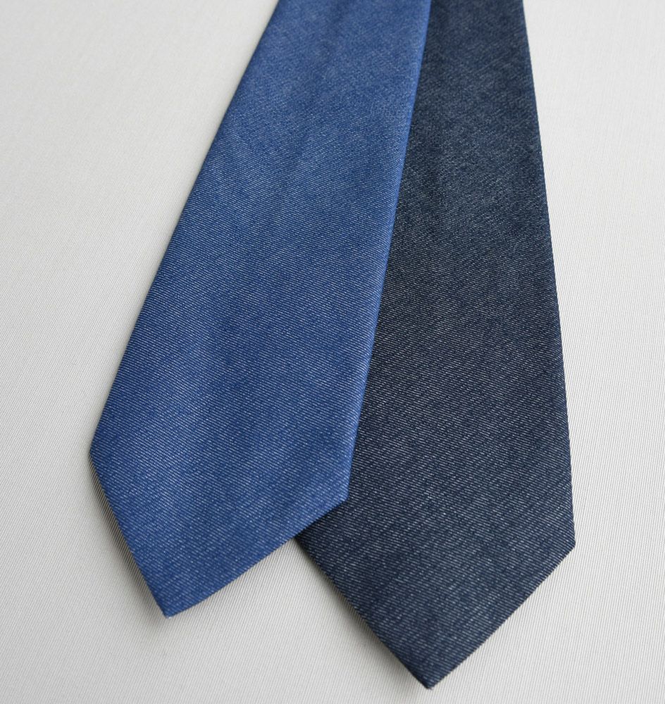 特徴 黒に近いダークインディゴ、ブルーインディゴ2色展開のデニムネクタイです。ライフスタイルホテルなどのユニフォームはたとえスーツでありながらも私服感覚を取り入れることで上手にリラックススタイルを表現しています。このデニムネクタイも上手く合わせることで、リラックススタイルを表現しながら且つお客様に敬意を表する、ことが出来るアイテムとなっています。素材はポリエステル35%、綿65%、耐久性に富んでいます。ネクタイの長さは170cm程度の身長に合うよう作られており、セミウインザーノットの時は小剣を短めにすれば結べます。プレーン、ダブルで結ぶのは問題ないです。大検先の巾はレギュラーよりやや広め、お客様より信頼感得る巾になっております。