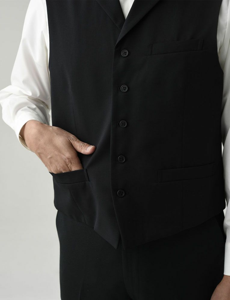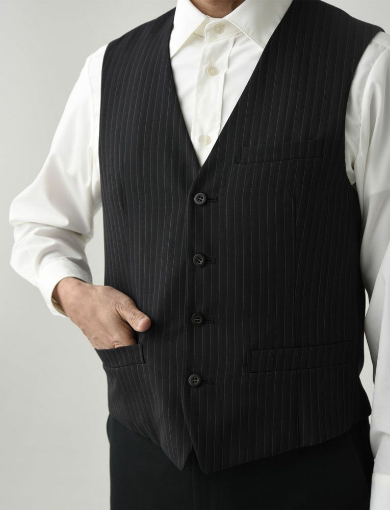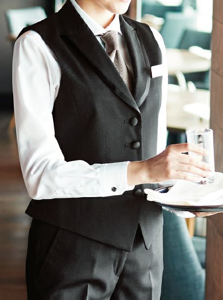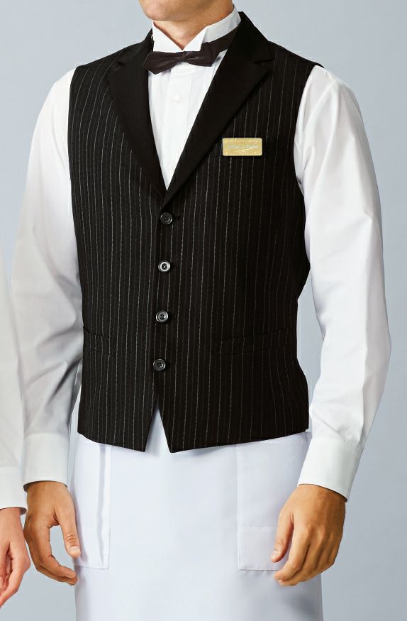 フォーマルなお店に。アルバイトとリーダーとを区別する役割にも。カマーベストも取扱い。 やはり1番人気はバーテンダーの黒ベスト。