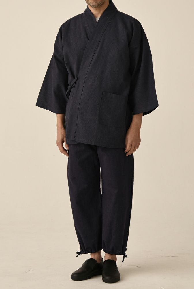 他の画像を見る プリント 刺繍 ポケット外し・追加 袖丈直し 作務衣のはだけ防止 M~LL 【日本製】作務衣・上着 [デニム調] [男女兼用] [KY-SJ4714] ¥ 11,385 税込 お気に入りに登録する