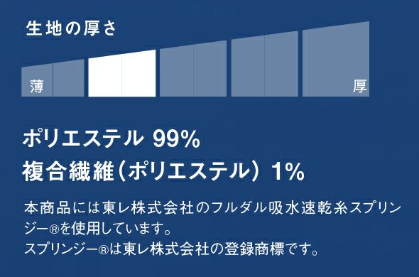 素材 ・ポリエステル99%・複合繊維(ポリエステル)1%、スプリンジー(R)ツイル