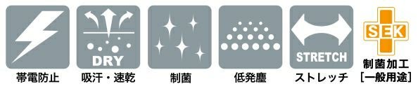 帯電防止・吸汗・速乾・制菌・低発塵・ストレッチ・制菌加工