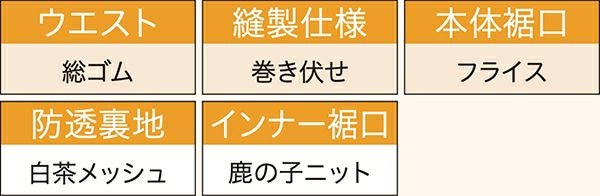 特徴 ・共紐入り、ウエストゴム取り替え口