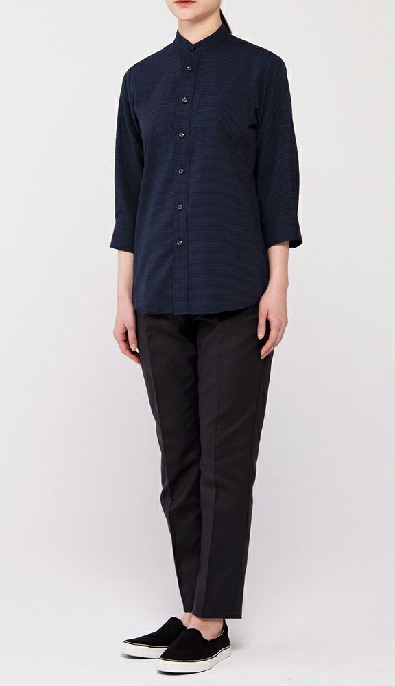| 特徴 | ニュースタンダードシャツとして開発されたスタンドカラー7分袖シャツ。素材はシアサッカー、表面に凹凸があり肌離れが良く、涼しい素材です。カジュアルなシーンからレストランサービスまで使用できます。ユニフォームにありがちな大は小を兼ねるシルエットではなく、程よくフィットし、着用時の見え感はとても品格あるものになっています。ユニフォームに必要な胸ポケットは左にあります。わずかですがストレッチがあり着心地は快適です。ポリエステル50%入っているため洗濯耐久性も良いものになります。見た目、着心地共にとても豊かな綿の風合いを感じるところも特徴になっています。アイロンをしっかりあてるとサッカー調の風合いが無くなりますので、低温で軽くあてるか、あてずに使用することをオススメします。 |